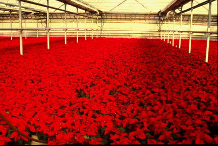 | Damages caused by wrong usage of growth hormones: Plant growth regulators (PGRs) are excellent tools to help control undesirable stretch of floriculture crops. When used at the correct stage of development and rate, they provide excellent height control. Misapplications can lead to catostrophic results, which lower plant quality. Common problems include phytotoxicity, delayed flowering, and stunted growth . This handout is designed to aid in diagnosing the symptoms of PGR overdose Picture on the right side shows damaging effects on the Poinsettia; Typical smaller flower bracts with damages to the leaves |